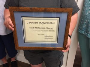 Sandy McReynolds, Town Historian, Awarded Recognition for Her Work Sandy McReynolds awarded recognition for her work by the Greenwich Easton Historical Association. Present were members Kathleen Horton, Debi Craig, Claudia Blackler, Pat Ruppel and Kathy Rapp.